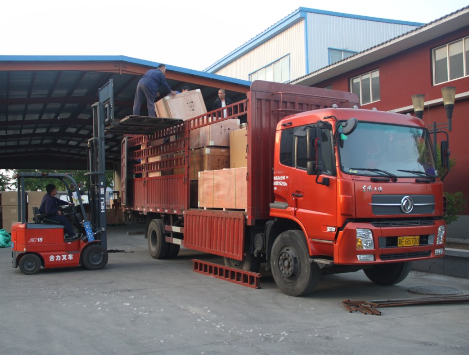 他們有條不紊、一絲不茍,把展品一件件的搬運(yùn)上車。為了確保產(chǎn)品在運(yùn)輸途中的安全,他們更是仔細(xì)揣摩、合理安排擺放位置。好高!兄弟們一定要注意安全啊!