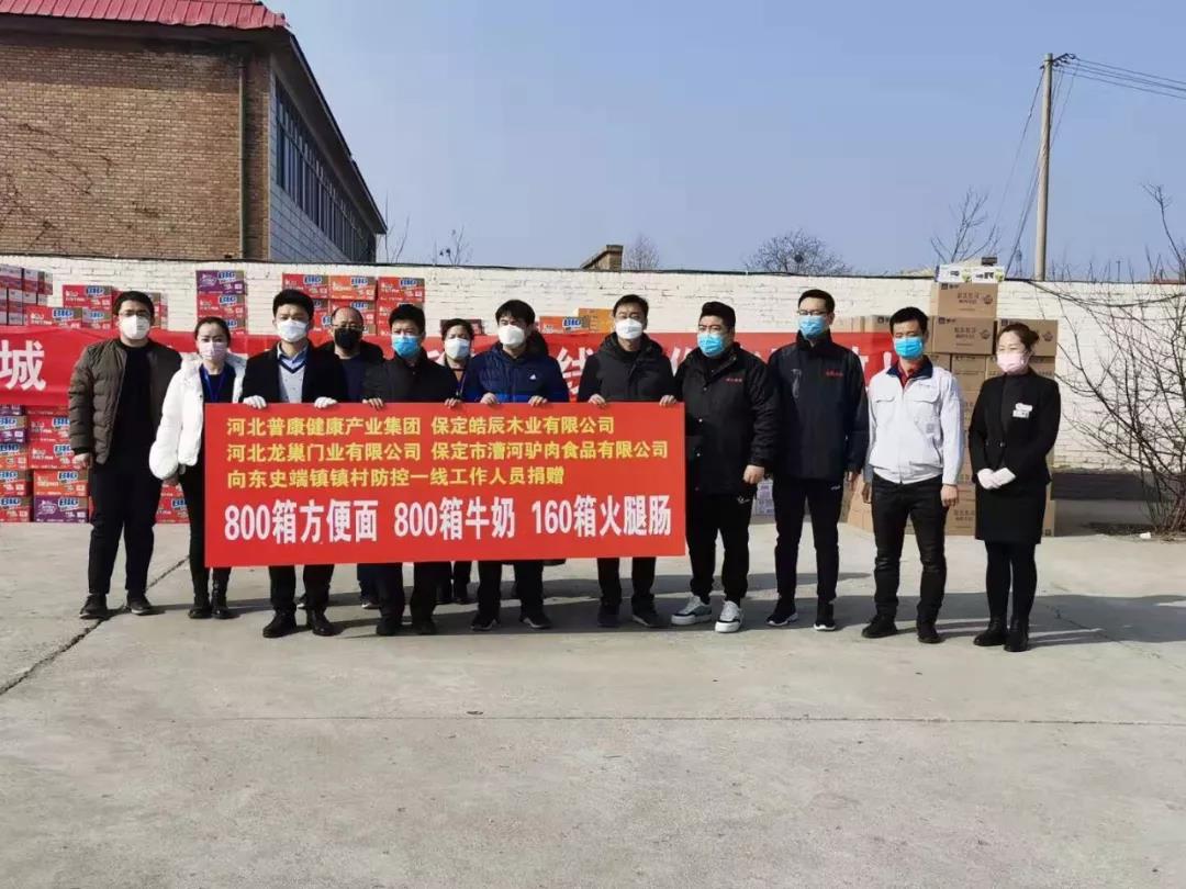 困難時(shí)刻顯擔(dān)當(dāng),關(guān)鍵時(shí)刻敢沖鋒,哪里有需要,哪里就能看見黨旗在飄揚(yáng)。在這舉國戰(zhàn)“疫”的緊要關(guān)頭,普康健康產(chǎn)業(yè)集團(tuán)、皓辰木業(yè)有限公司、龍巢門業(yè)、漕河驢肉食品有限公司四家愛心企業(yè),積極響應(yīng),積極奉獻(xiàn)愛心、踐行社會責(zé)任,踴躍捐款捐物,于2月10日向東史端鎮(zhèn)防控一線工作人員捐贈(zèng)800箱方便面,800箱牛奶,160箱火腿腸。這些物資將緊急發(fā)送至東史端鎮(zhèn)的15個(gè)村的防控監(jiān)測站。